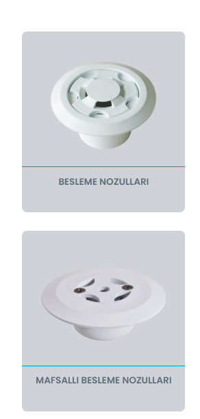 Kullanım amacına ve montaj yerine göre farklı nozul tipleri bulunmaktadır: